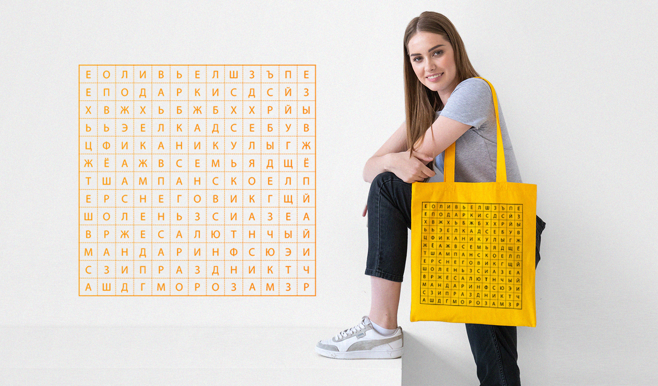 Подарок, который несёт в себе особый смысл. На шоппере мы печатаем поле с буквами, а в комплект вкладываем текстильный маркер и инструкцию, где предлагаем человеку обвести первые три слова, которые он увидит. Эти слова станут его личными талисманами на весь следующий год! Для максимальной эксклюзивности мы можем разработать индивидуальное поле филворда для каждого получателя, чтобы избежать повторений.
