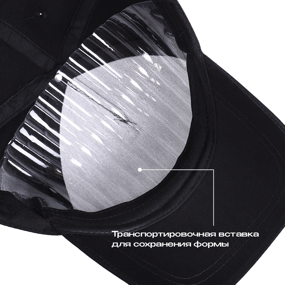 Для изготовления бейсболки использовали плотный хлопковый твил, благодаря которому изделие защитит от непогоды и надолго сохранит форму. Внутренняя обтачка из хлопчатобумажной ткани делает бейсболку комфортной для жаркой погоды.