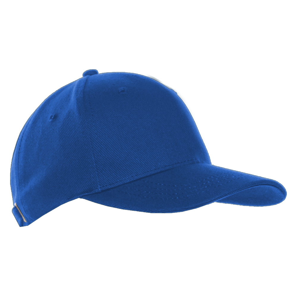 Бейсболка-пятиклинка без лобового шва с изогнутым жестким козырьком и регулируемой металлической застежкой.
