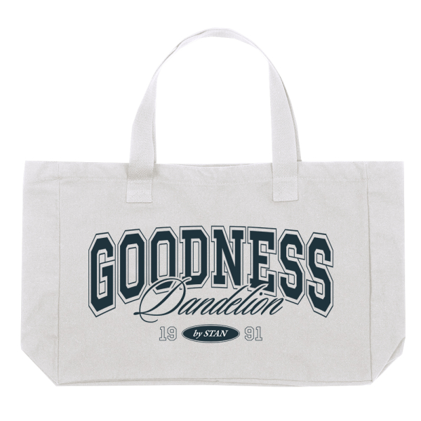 Шопер с винтажным принтом «Goodness» («Доброта») сочетает в себе стиль и смысл. Объемный и практичный, он готов вместить не только ваши повседневные вещи, но и добрые дела, которые вы планируете совершить.