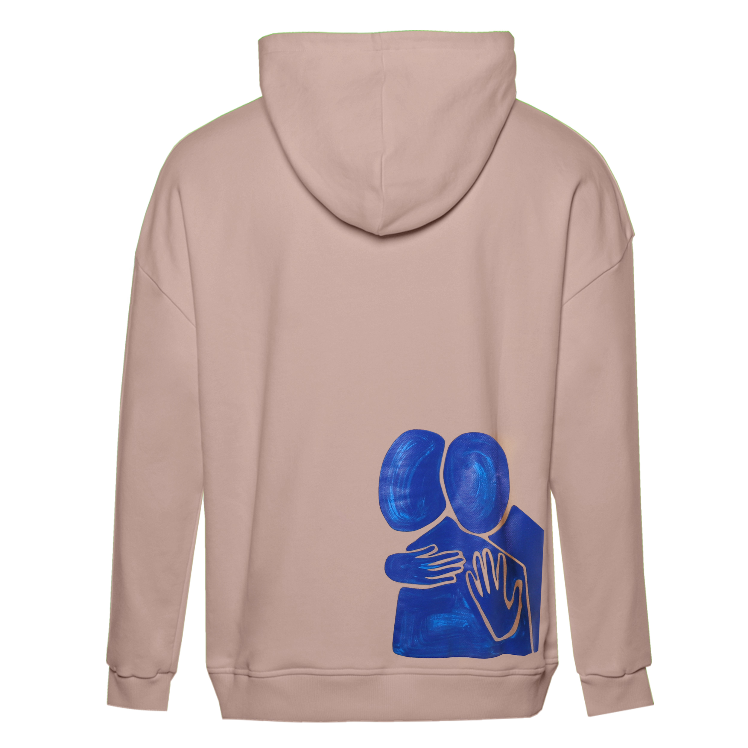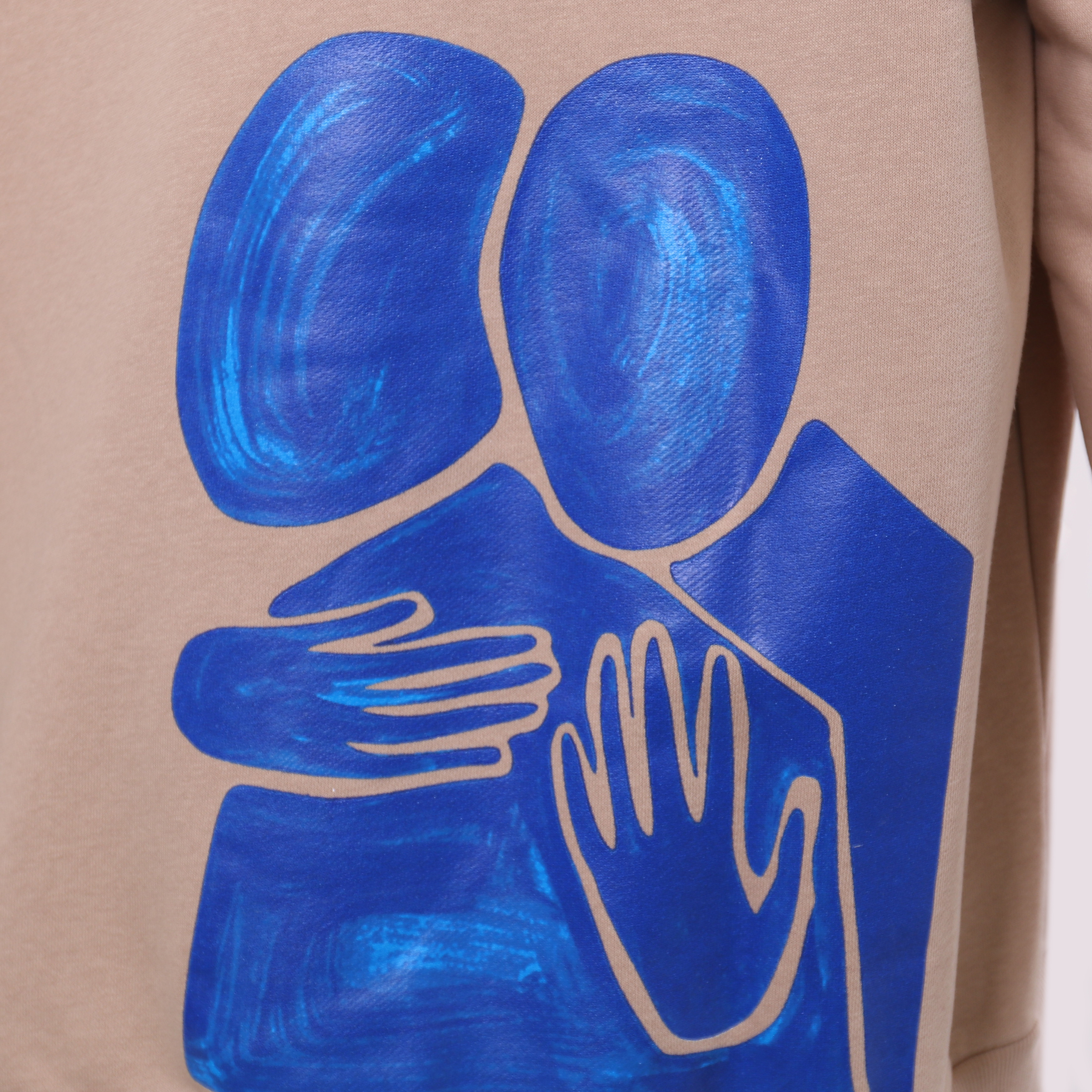 «Теплота снаружи, теплота внутри» — ключевая идея этой модели. Комфортный крой и мягкие материалы создают ощущение уюта, а принт с изображением объятий напоминает о единении душ.