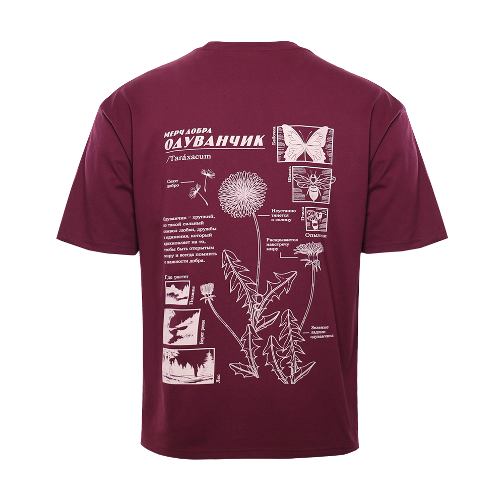 Почему одуванчик стал символом добра? Эта футболка — наш развернутый ответ. Ботанический принт рассказывает историю нашего символа: от ностальгии по детству и лету, до стремления к свету и простоте, в которой скрывается великая сила.