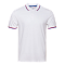 Мужская рубашка поло прямого силуэта с отложным воротником, втачным коротким рукавом и застежкой на пуговицы. Воротник и манжет оформлены тесьмой в цвете «триколор».