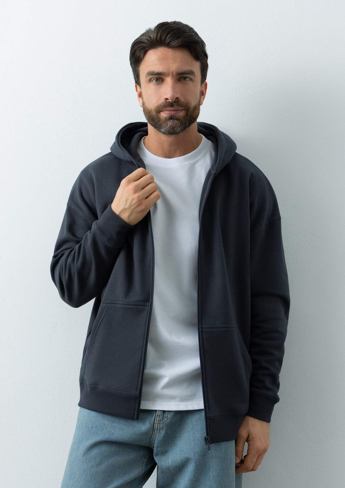 | Толстовка унисекс Oversize Zip с капюшоном сэндвич 320, 100, Графит | XS/44 | S/46 | M/48 | L/50 | XL/52 | XXL/54 |