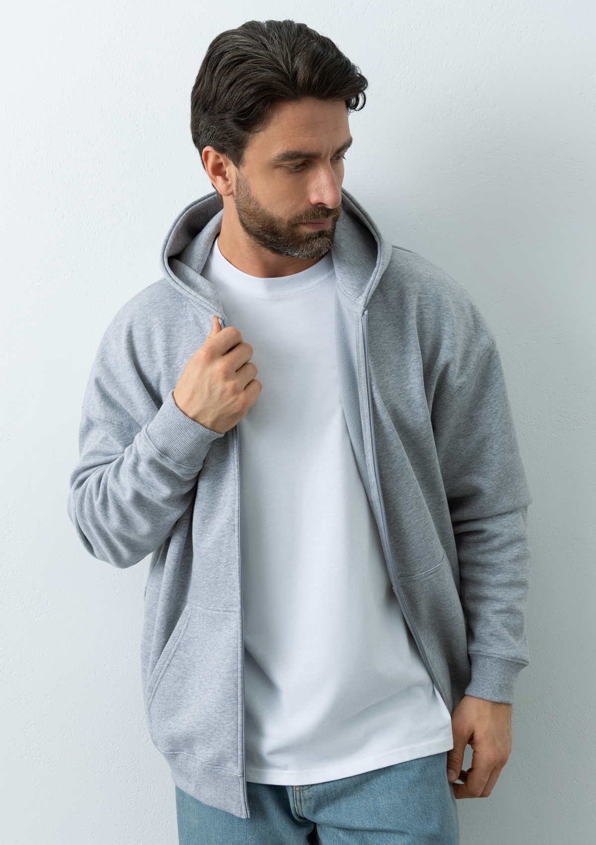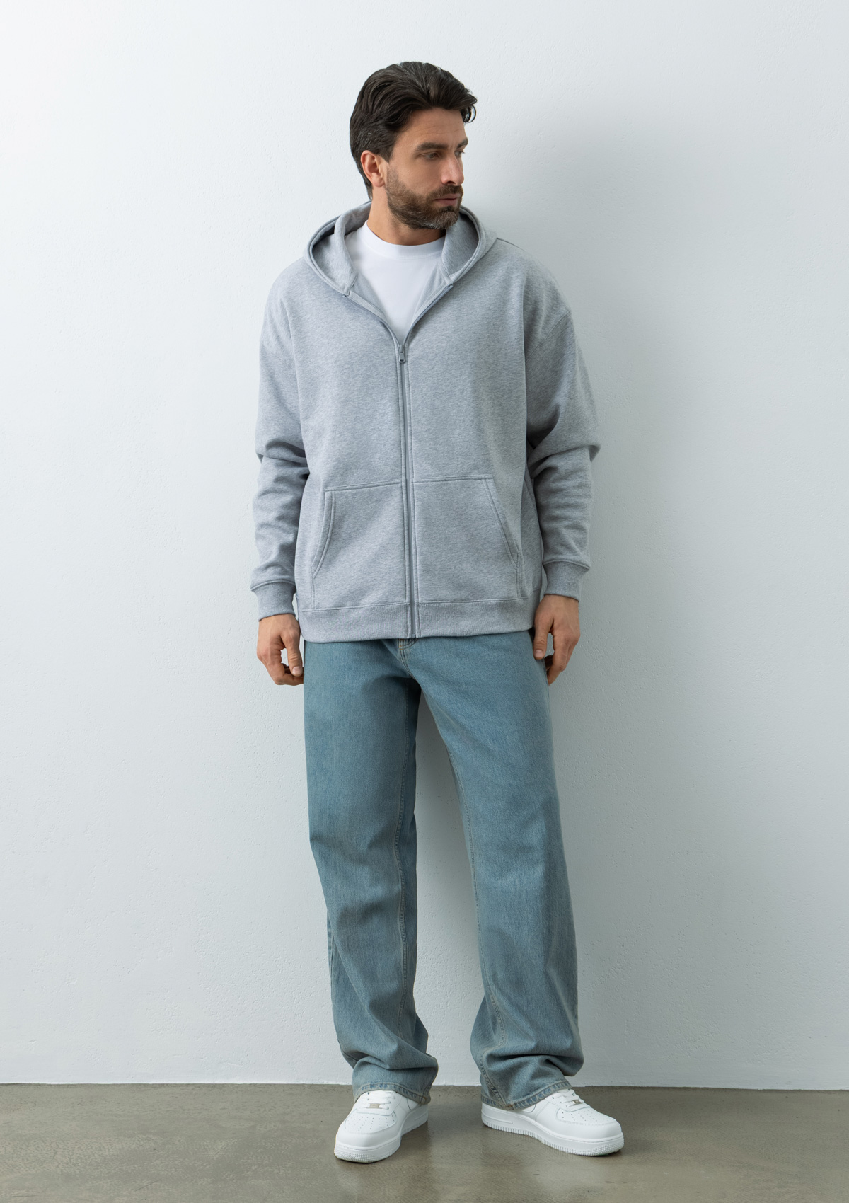 | Толстовка унисекс Oversize Zip с капюшоном сэндвич 320, 100, Серый меланж | XS/44 | S/46 | M/48 | L/50 | XL/52 | XXL/54 |