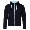 Мужская толстовка прямого силуэта с капюшоном комфортной глубины, втачным рукавом, прорезным карманов и застежкой на контрастную молнию. Капюшон дополнен плоским шнурком для регулировки прилегания, манжет и низ изделия выполнены из основного полотна.