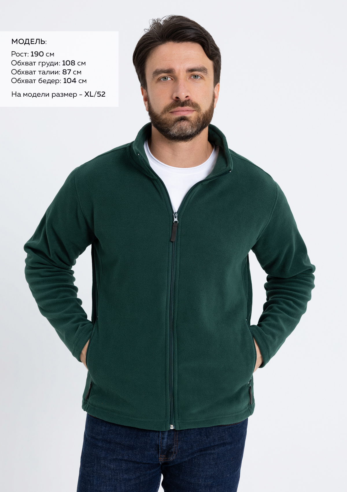 Размер на модели: XL/52. Параметры модели: рост 190 см.; обхват груди 108 см.; обхват талии 87 см.; обхват бедер 104 см.