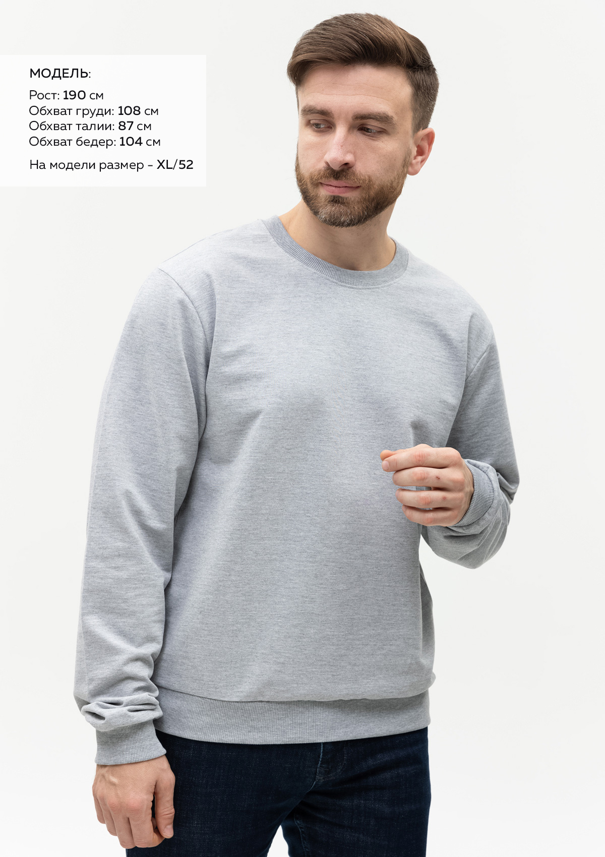 Размер на модели: XL/52. Параметры модели: рост 190 см.; обхват груди 108 см.; обхват талии 87 см.; обхват бедер 104 см.