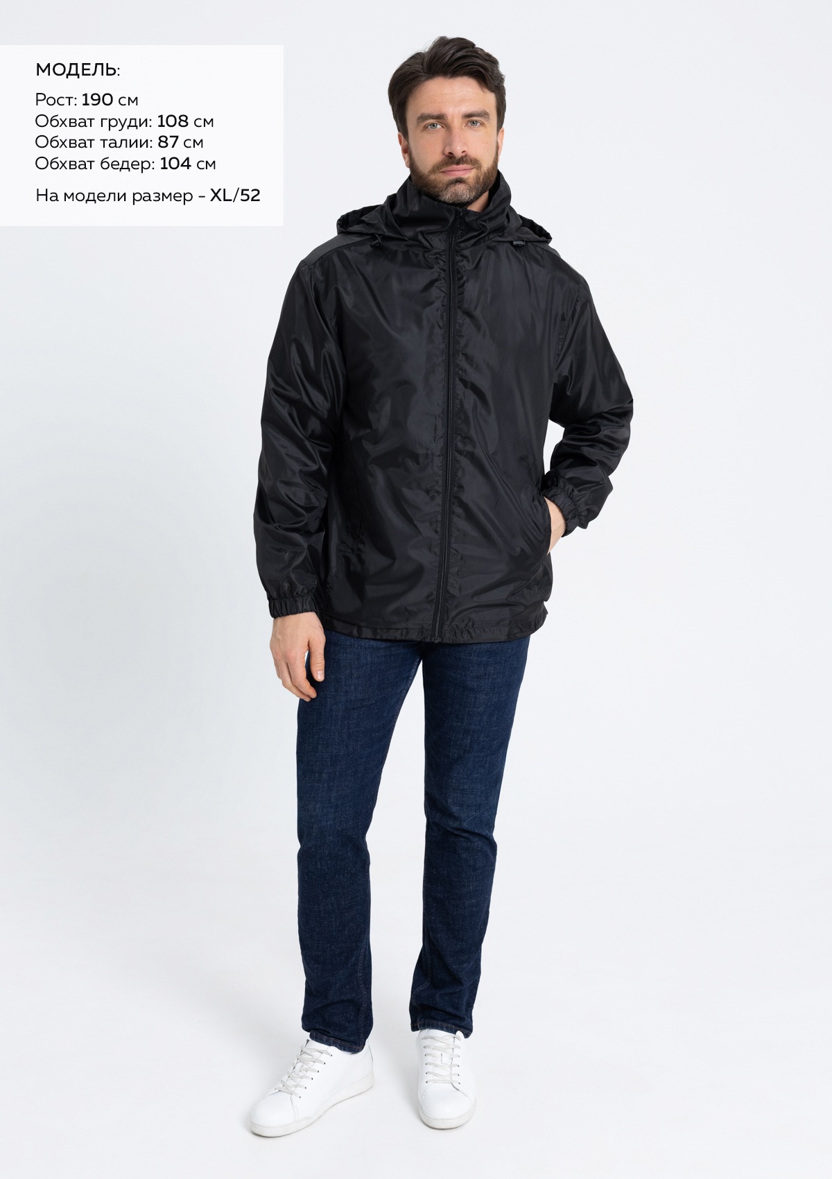 Размер на модели: XL/52. Параметры модели: рост 190 см.; обхват груди 108 см.; обхват талии 87 см.; обхват бедер 104 см.