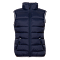 Женский жилет приталенного силуэта с геометричной стежкой, воротником-стойкой, прорезным карманом и застежкой на молнию. Изделие дополнено контрастной резинкой по пройме и линии низа для дополнительной защиты от холода и ветра.